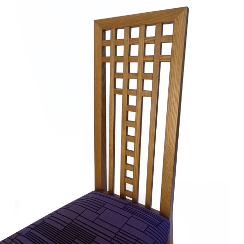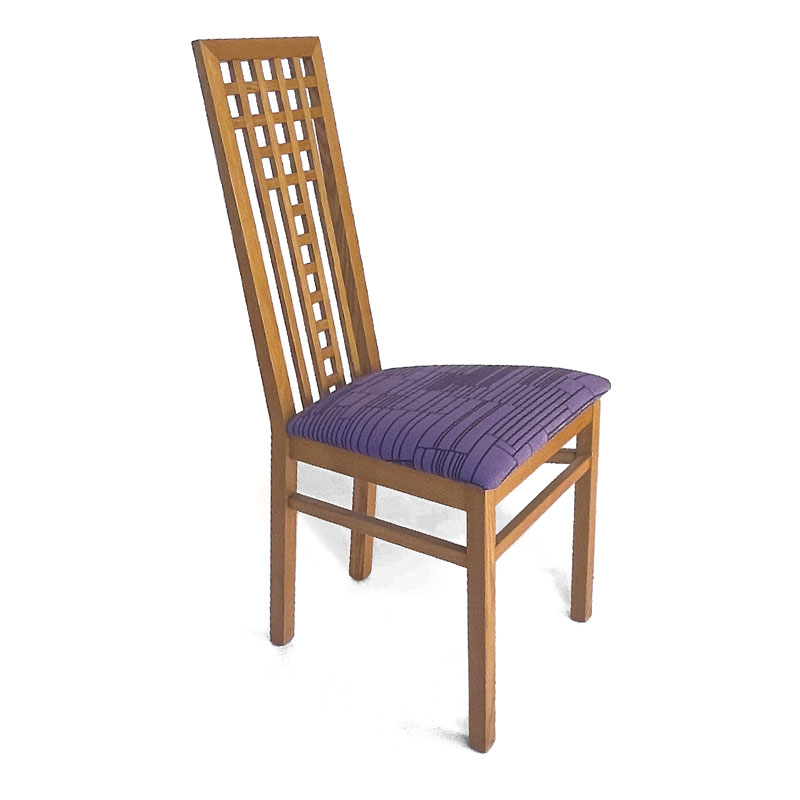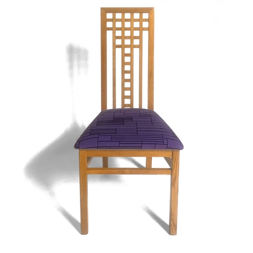Couleur :    Bois teinté miel, siège rembourré tissu art déco violet