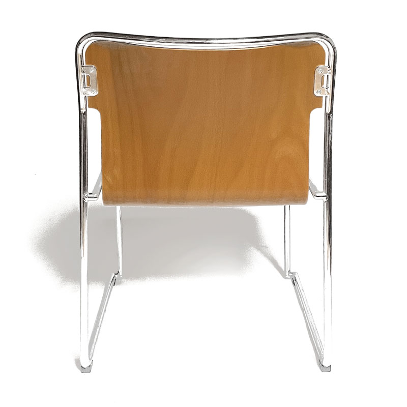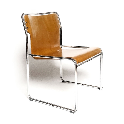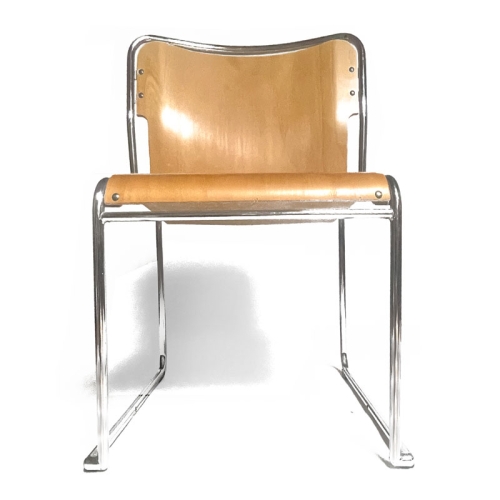 Le fabricant suédois Lammulths commence ses activités en 1945, l'entreprise fondée par Edvin Stähl s'oriente dans la production de mobilier moderniste, des meubles au design épuré et fonctionnel adapté à la production industrielle. Depuis 1970, le fabricant s'est également dédié à la conception d'un design fonctionnel destiné à meubler les bureaux et les espaces publics, tout en continuant à produire des créations adaptées aux particuliers. Que ce soit pour le secteur privé ou pour le secteur public, Lammulths a toujours la volonté d'innover, en étroite collaboration avec des designers de talent. Design épuré, pour cette chaise 77, produit dan les année 1980. Destiné plutôt pour les collectivités, elle est très compacte. le tube entourant complètement l'assise, la rend trés robuste. Il existe plusieurs versions de ce modèle.