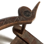 Les chaises Senoufo sont souvent caractérisées par une structure simple et solide, avec des motifs sculptés représentant des éléments naturels ou des figures stylisées. Le siège est généralement en bois dur avec un dossier décoré, griffé de motifs géométriques. Le design est fonctionnel et chaque chaise a une caractéristique de son groupe ethnique. Elles sont ressemblantes aux chaises Baoulé, ethnie voisine de Côte d'Ivoire.