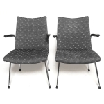Voilà deux fauteuils très confortables...Les frères De Wit furent pionniers dans les années 1950 et 1960 dans la production de mobilier moderne de haute qualité. Leurs créations étaient épurées, fonctionnelles et parfaitement équilibrées, le fauteuil 3114 en est le parfait exemple; une structure tubulaire robuste mais élégante, avec une assise confortable s'intégrant dans n’importe quel intérieur.