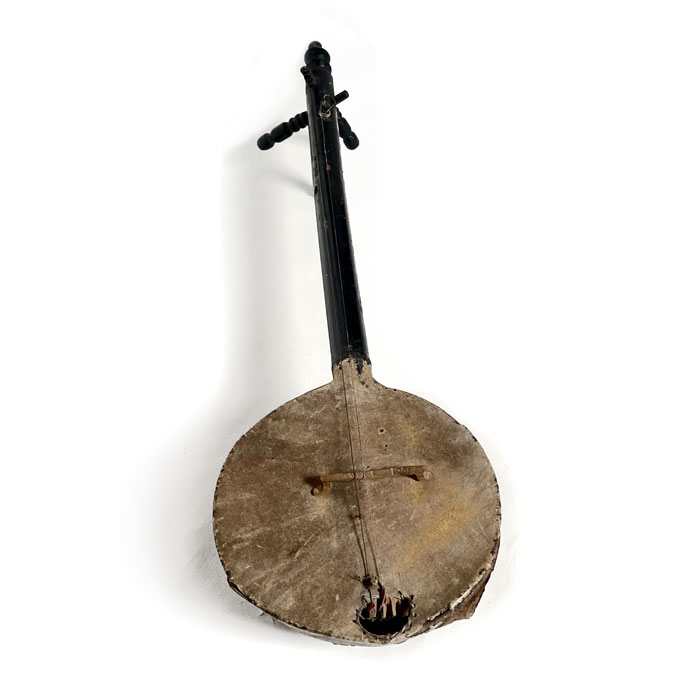 Cet instrument à cordes est rattaché à la famille de l'oud (luth égyptien), ayant trois cordes parallèles au manche, et fait partie du guimbri marocain. Normalement le loutar est fait d'un morceau de bois de cèdre, mais ici le modéle est manufacturé sur une écuelle en métal émaillé et recouvert d’une peau de mouton !