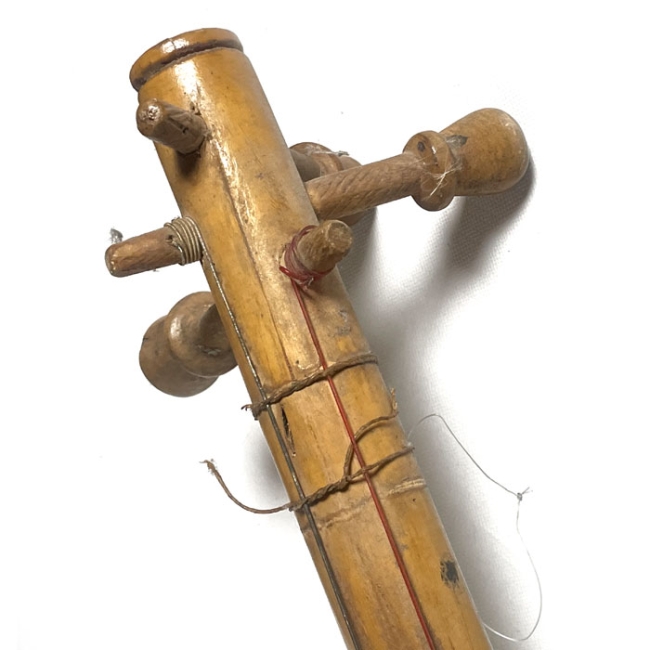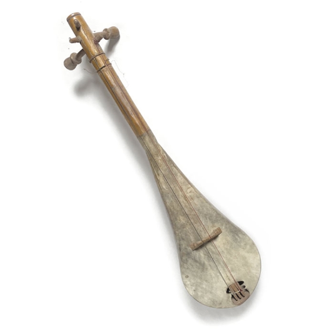 Le corps est fait d'un morceau de bois de cèdre, évidé, en forme de poire et recouvert d’une peau de mouton. Le manche est monté avec trois cordes. Aujourd'hui, il possède des cordes en nylon.