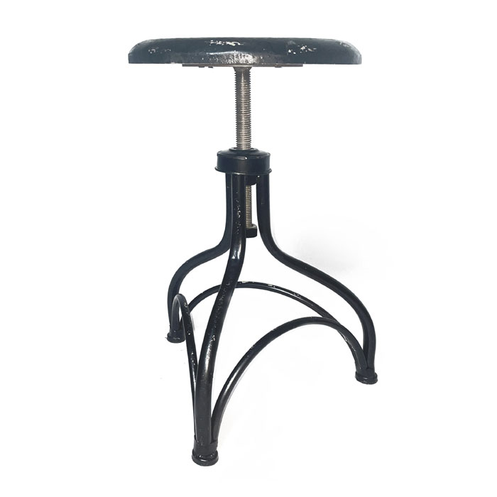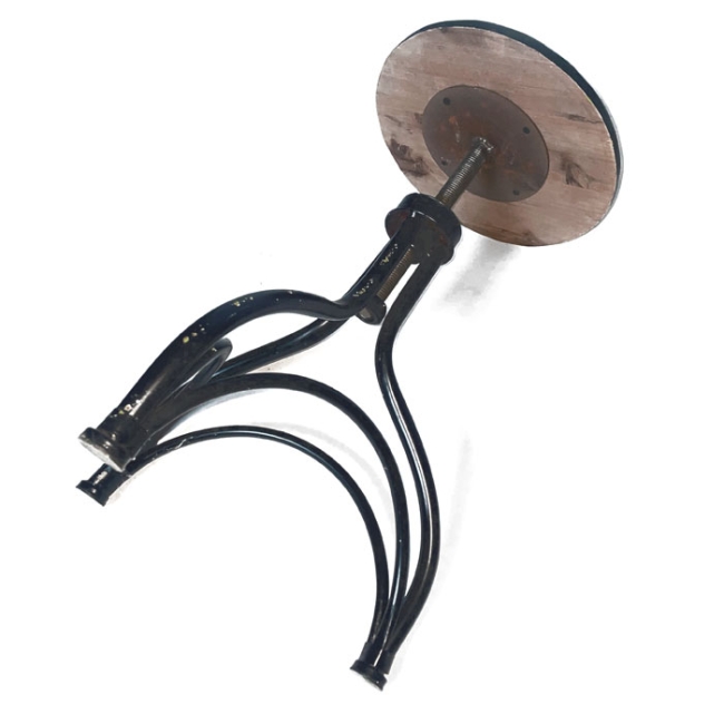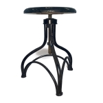 Tabouret industriel bois mètal réglable 1950 Tabouret industriel réglable en hauteur des années 1950 structure en mètal patinè couleur canon de fusil dans un esprit atelier ou industriel . Assise refaite en chataignier massif finition cirée. Ancien modèle de l'armée de l'air. Idéal pour une décoration industrielle loft tendance vintage.